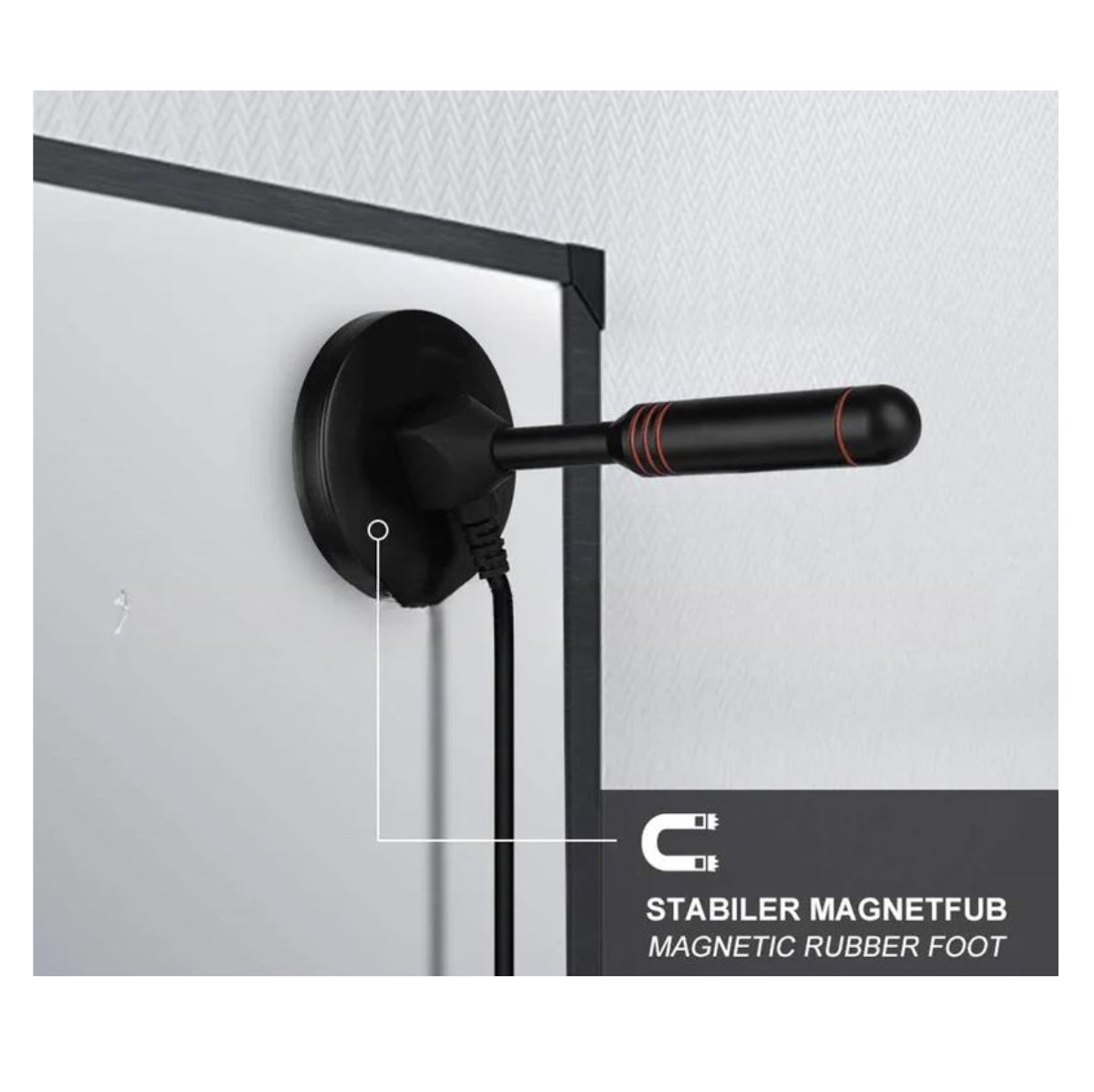 Ubícala en cualquier superficie metálica (tiene base imantada).